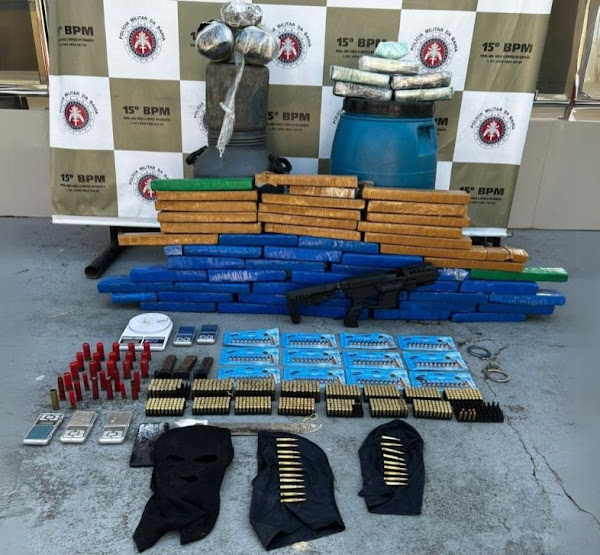 Na manhã de sexta-feira (22), a guarnição do 15° BPM realizou uma significativa apreensão no bairro Daniel Gomes, em Itabuna. Durante a Operação Força Total, os policiais encontraram uma espingarda, uma vasta quantidade de maconha e cocaína, além de um Kit Roni e uma grande quantidade de munições de diversos calibres. Um carro roubado também foi recuperado.