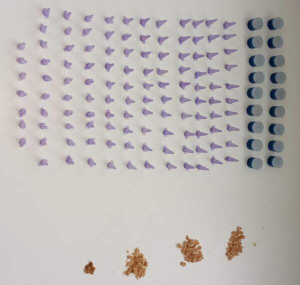 No total, foram apreendidos 117 pinos contendo substância análoga à cocaína, 18 recipientes com o que parecia ser haxixe e 95 pedras de uma substância semelhante a crack.