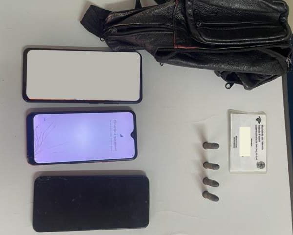 Diante da denúncia, as guarnições se deslocaram até o endereço, onde a busca domiciliar foi realizada após a devida autorização da responsável legal pelo imóvel. No interior da residência, os militares encontraram e apreenderam quatro munições de calibre .38 e três aparelhos celulares de origem suspeita.