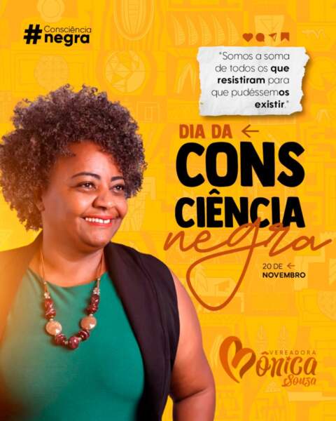 A vereadora de Ipiaú Mônica Souza (PT) utilizou suas redes sociais para compartilhar uma mensagem de conscientização e reflexão em homenagem ao Dia da Consciência Negra, celebrado em 20 de novembro.