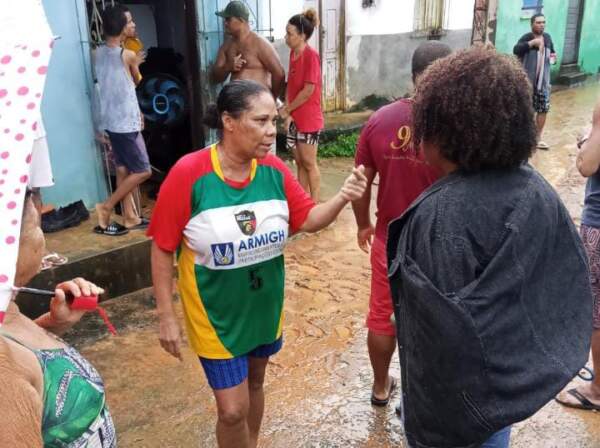 Além de prestar solidariedade, a vereadora reforçou seu papel de fiscalização ao acompanhar de perto o suporte oferecido às comunidades que tiveram residências invadidas ou danificadas pela força das chuvas na região do Médio Rio das Contas.