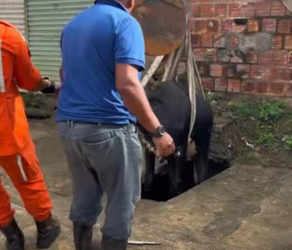 Após o resgate, a vaca foi encaminhada para o curral do município, onde ficará sob os cuidados da Prefeitura até que sejam identificados seus responsáveis. Apesar do susto, o animal foi retirado sem ferimentos aparentes.