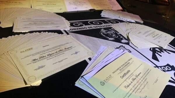 Os diplomas falsos abrangiam cursos de direito, psicologia, engenharias, biomedicina, fisioterapia, administração, educação física, entre outros.