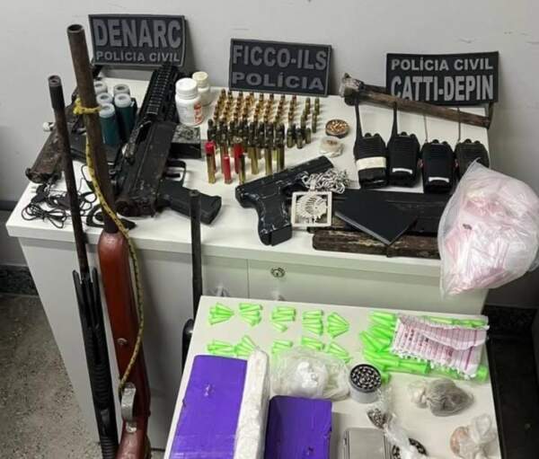 Durante a operação, os policiais apreenderam três motocicletas com restrição de roubo; Um veículo de luxo utilizado por traficantes; Duas submetralhadoras calibre 9mm; Uma pistola calibre 9mm; Um revólver calibre .38; Uma réplica de pistola; Uma espingarda calibre 28; duas espingardas calibre 22; Quatro carregadores; 101 munições de diversos calibres; 112 pinos de cocaína, 1 kg de cocaína pura; 2 kg de maconha prensada; Seis pés de maconha in natura; porções de haxixe; Quatro rádios comunicadores; Duas balanças de precisão.