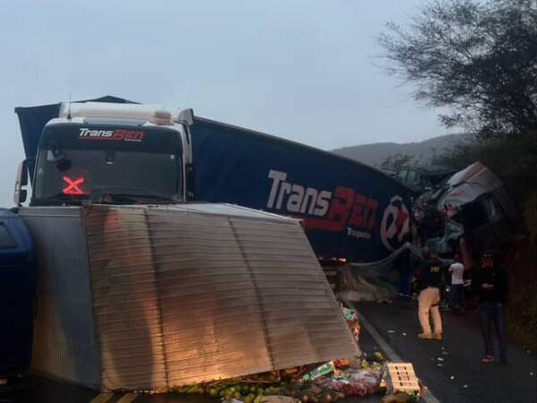O motorista de um caminhão-baú, que transportava verduras teria perdido o controle da direção, tombando o veículo sobre a rodovia e, duas carretas, uma delas cegonha, que seguiam no mesmo sentido acabaram colidindo, uma terceira conseguiu evitar a colisão, apesar de parar no local da cena.