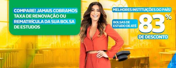 - Mensalidades com preços a partir de R$56,00 para bolsas de GRADUAÇÃO;